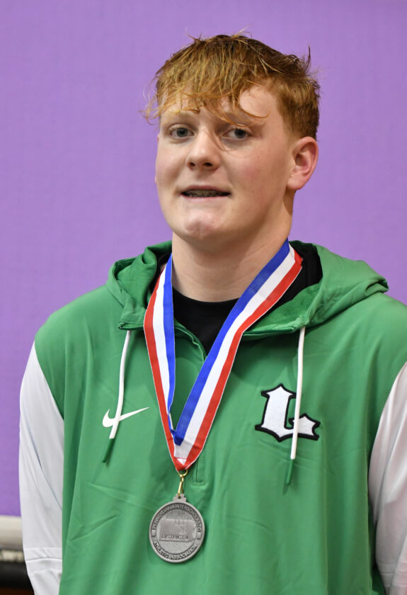Hopkinson was one of three Lewisburg swimmers to medal and take a top-4 podium spot. Colin Shannon, a freshman, swam a time of 1:50.84 to take silver in the boys 200 free, just two seconds behind Bloomsburg’s Grayson Reck who won in 1:48.62. Miles Fassero finished fourth in the boys 200 IM race in 2:14.72 as Chase Moore of Bloomsburg took gold in 1:56.97.