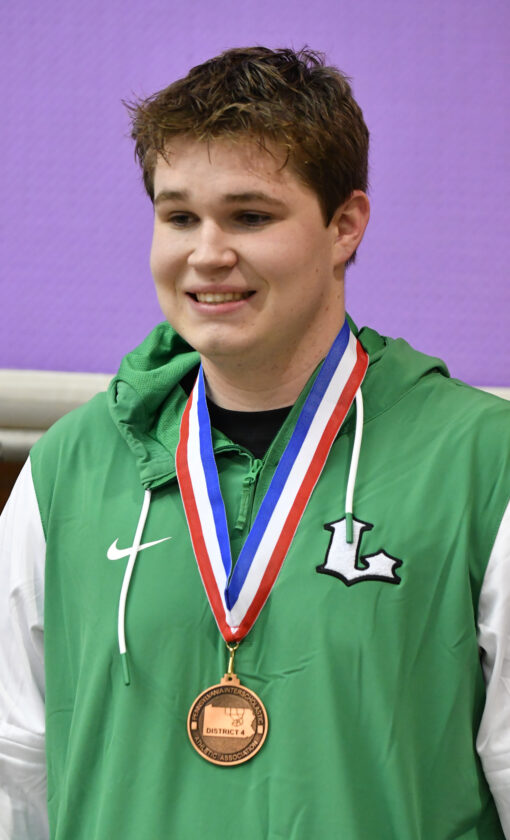 Lewisburg’s Colin Shannon stands on the awards podium after placing second in the Boys 200 Yard Freestyle in the District IV Class AA Swimming Championships at Williamsport High School Wednesday.